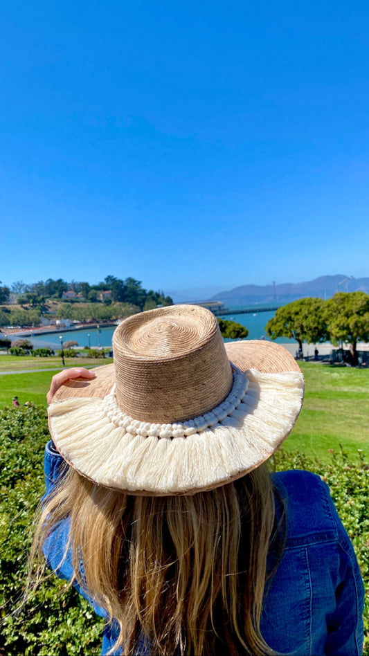 Picture a hat that embodies the essence of free-spirited soul, basking in the glow of sunlit and chasing moonlit trails under a star studded sky. Sun whisperer captures the very essence of this bohemian aesthetic, with its earthy tones and graceful lines.